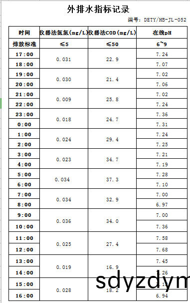 山東(dong)道(dao)恩鈦業股份(fen)有(you)限公(gong)司2020年10月31日(ri)外排水(shui)指標數(shu)據(ju):