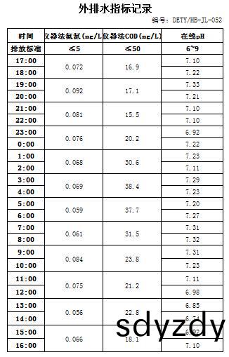 山東道(dao)恩鈦(tai)業(ye)股(gu)份(fen)有限公司(si)2020年(nian)11月6日外(wai)排水指(zhi)標(biao)數(shu)據:
