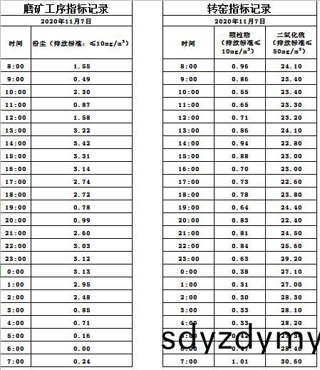 山(shan)東道(dao)恩(en)鈦業(ye)股份(fen)有(you)限公(gong)司2020年11月7磨鑛(kuang)工(gong)序煙氣及(ji)轉(zhuan)窰煙氣(qi)指(zhi)標(biao)數據(ju):