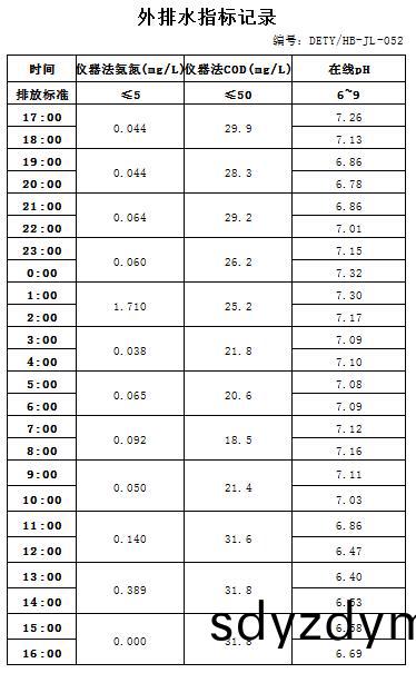 山(shan)東道恩鈦(tai)業(ye)股份(fen)有限(xian)公司(si)2020年(nian)11月(yue)12日外(wai)排(pai)水(shui)指(zhi)標數據: