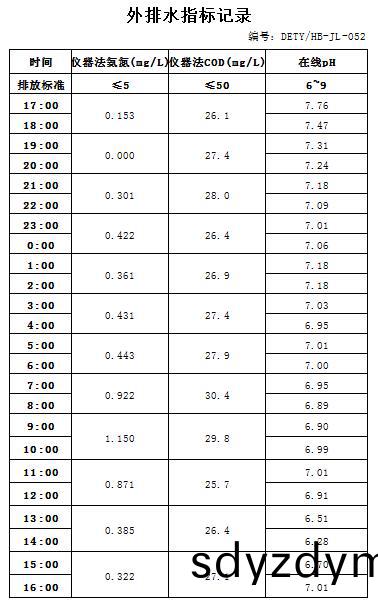 山(shan)東(dong)道(dao)恩鈦業股(gu)份(fen)有(you)限(xian)公司(si)2020年(nian)11月(yue)15日外排水(shui)指(zhi)標(biao)數(shu)據: