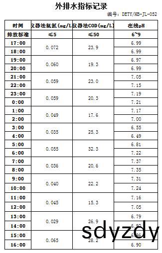山(shan)東(dong)道(dao)恩(en)鈦(tai)業(ye)股(gu)份有限(xian)公司(si)2020年11月(yue)20日外排水指(zhi)標(biao)數(shu)據: