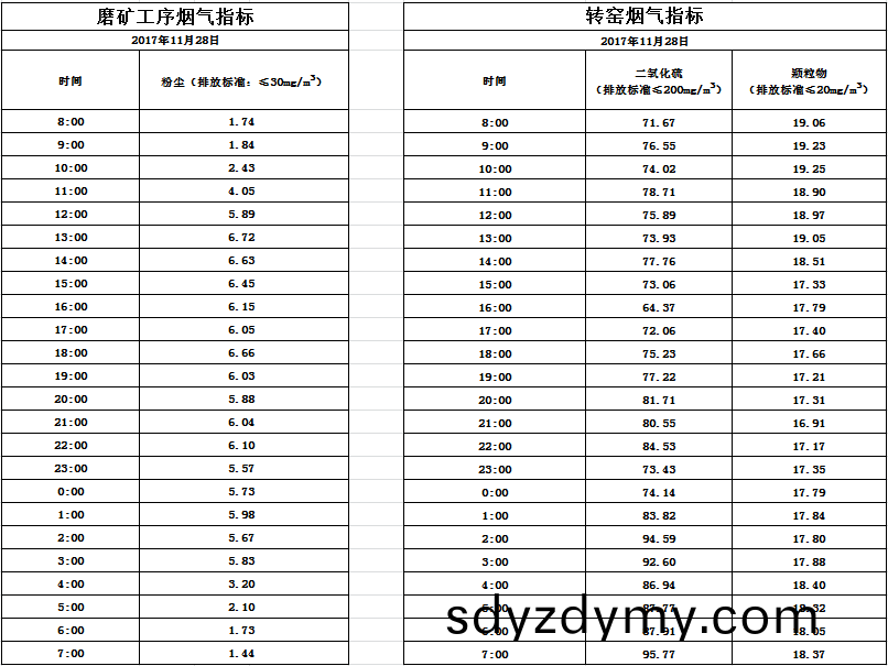 山(shan)東(dong)道(dao)恩鈦(tai)業(ye)股(gu)份(fen)有(you)限公司2017年11月(yue)28日(ri)煙(yan)氣數(shu)據