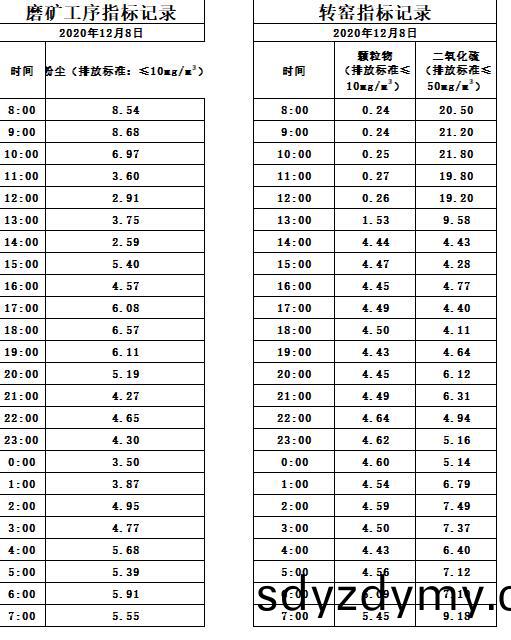 山東道(dao)恩(en)鈦(tai)業(ye)股(gu)份有限公(gong)司2020年12月8磨鑛(kuang)工序(xu)煙(yan)氣(qi)及(ji)轉(zhuan)窰煙(yan)氣指(zhi)標數(shu)據: