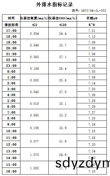 山(shan)東(dong)道(dao)恩鈦業(ye)股份(fen)有(you)限(xian)公(gong)司2020年12月(yue)9日(ri)外(wai)排水(shui)指標(biao)數據(ju):