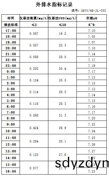山(shan)東(dong)道(dao)恩鈦業(ye)股份(fen)有(you)限(xian)公司(si)2020年(nian)12月(yue)12日外(wai)排水指標(biao)數據: