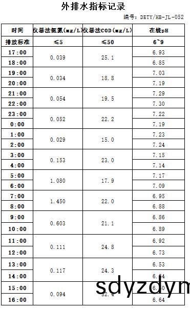山東道恩鈦業(ye)股(gu)份(fen)有(you)限(xian)公司(si)2020年(nian)12月(yue)19日外(wai)排(pai)水指(zhi)標數據:
