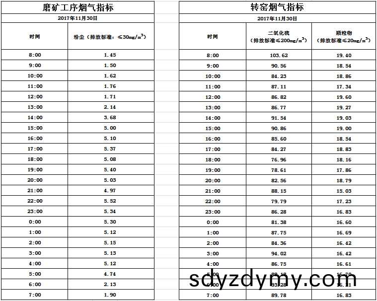 山東(dong)道(dao)恩(en)鈦(tai)業股(gu)份有(you)限公(gong)司(si)2017年(nian)11月(yue)30日煙(yan)氣(qi)數(shu)據