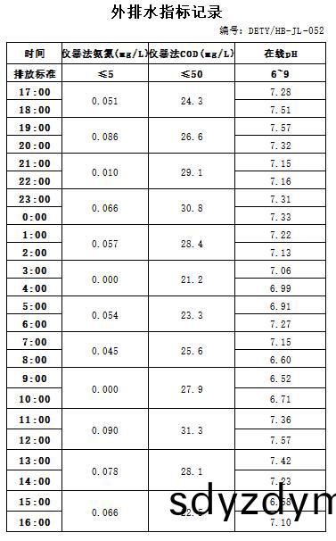 山(shan)東道(dao)恩鈦(tai)業(ye)股(gu)份(fen)有(you)限公司(si)2021年(nian)1月9日外(wai)排水指(zhi)標數(shu)據(ju):