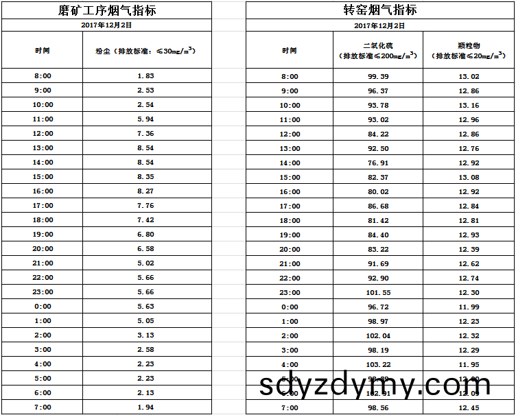 山(shan)東(dong)道(dao)恩鈦(tai)業股(gu)份(fen)有(you)限(xian)公(gong)司2017年(nian)12月02日(ri)磨(mo)鑛工(gong)序煙(yan)氣(qi)及(ji)轉(zhuan)窰(yao)煙氣(qi)指標(biao)數據:山東(dong)道恩鈦(tai)業股(gu)份(fen)有限(xian)公司2017年(nian)12月(yue)02日磨鑛工序煙(yan)氣(qi)及轉窰煙氣(qi)指(zhi)標(biao)數據: