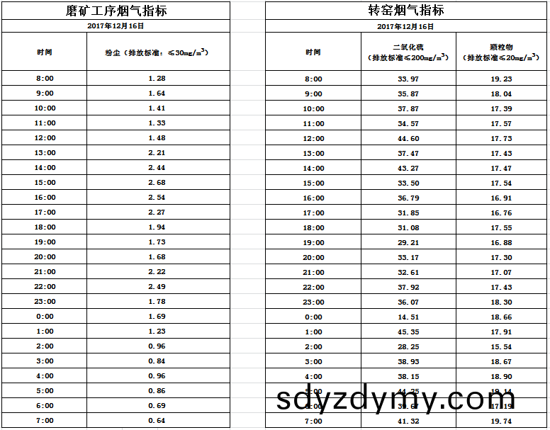 山東(dong)道恩鈦業(ye)股份有限(xian)公司(si)2017年12月16日磨鑛(kuang)工(gong)序煙氣(qi)及(ji)轉(zhuan)窰煙(yan)氣(qi)指標數據(ju):山東道恩鈦(tai)業(ye)股份(fen)有(you)限(xian)公(gong)司2017年12月(yue)16日(ri)磨(mo)鑛工(gong)序煙(yan)氣及(ji)轉窰(yao)煙(yan)氣(qi)指(zhi)標(biao)數據:
