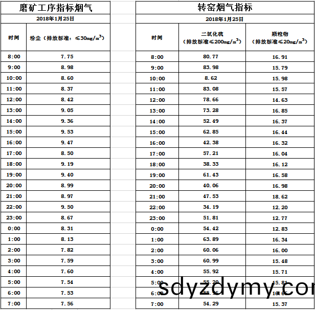 山(shan)東道恩鈦業股份(fen)有(you)限(xian)公(gong)司(si)2018年(nian)1月(yue)25日煙氣(qi)數據(ju)