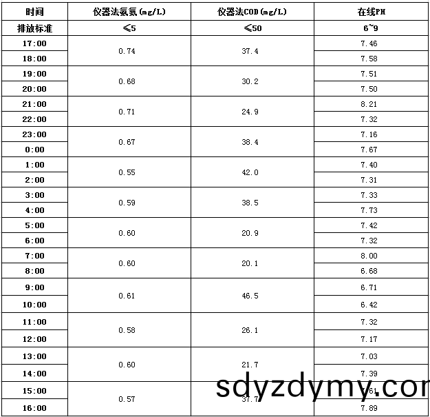 山(shan)東(dong)道恩鈦業(ye)股份(fen)有(you)限(xian)公(gong)司2018年1月27日(ri)外排水(shui)指標(biao)