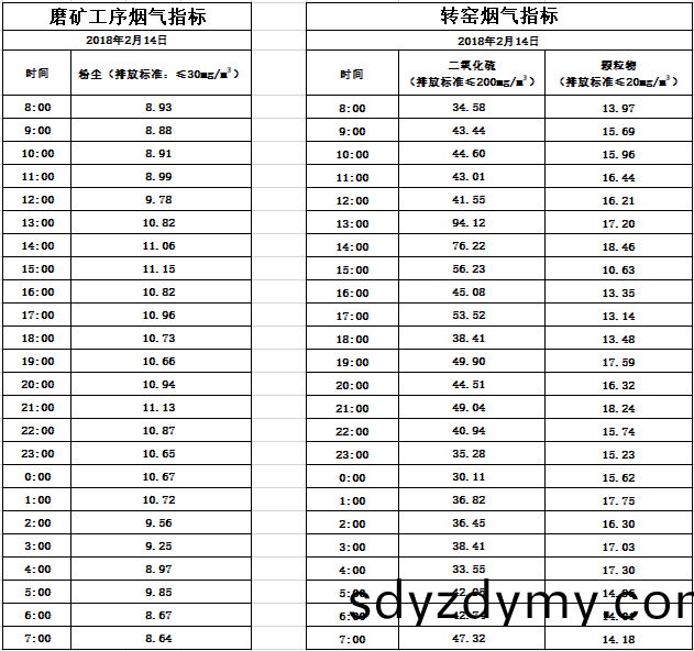 山(shan)東道恩鈦業股份有限(xian)公司(si)2018年(nian)2月14日(ri)煙氣(qi)數據