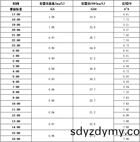 山東(dong)道恩鈦(tai)業股(gu)份有限公司2018年(nian)3月(yue)11日外(wai)排(pai)水指標數據: 山(shan)東道(dao)恩鈦業(ye)股份(fen)有(you)限(xian)公(gong)司2018年3月11日外排水(shui)指(zhi)標數據(ju):
