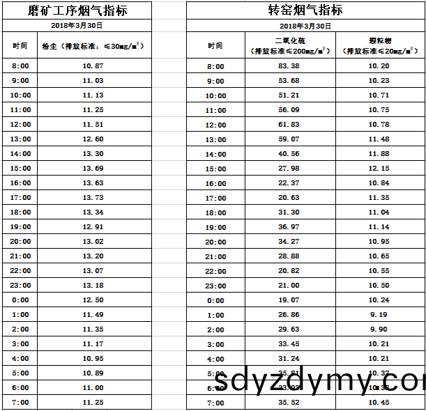 山東(dong)道恩(en)鈦(tai)業股(gu)份有限公(gong)司(si)2018年(nian)3月(yue)30日煙(yan)氣(qi)數據