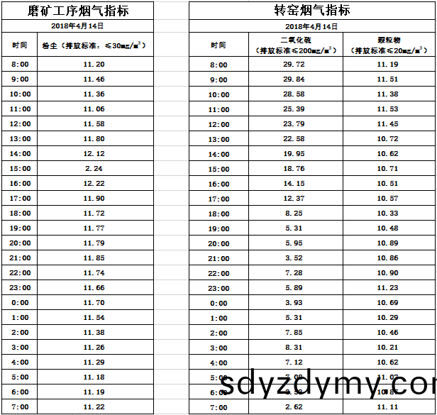山(shan)東道(dao)恩鈦(tai)業股份(fen)有(you)限公(gong)司2018年4月14日(ri)煙氣數(shu)據(ju)
