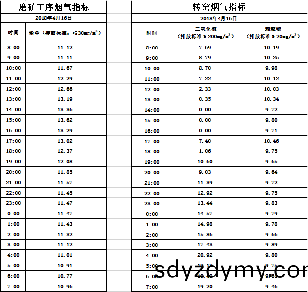 山(shan)東道(dao)恩(en)鈦業(ye)股(gu)份有(you)限公司2018年(nian)4月(yue)16日(ri)煙氣數據