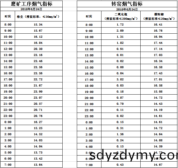 山東道(dao)恩鈦業(ye)股份有(you)限公司(si)2018年6月24日(ri)磨鑛(kuang)工(gong)序煙(yan)氣(qi)及轉窰(yao)煙氣指標(biao)數(shu)據(ju):山東(dong)道(dao)恩鈦業(ye)股份有限公司(si)2018年(nian)6月(yue)24日(ri)磨鑛(kuang)工序(xu)煙(yan)氣(qi)及(ji)轉(zhuan)窰(yao)煙(yan)氣(qi)指標數據(ju):