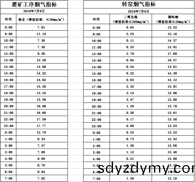 山(shan)東(dong)道恩鈦業(ye)股份(fen)有(you)限(xian)公司(si)2018年(nian)7月6日(ri)煙氣(qi)數據(ju)