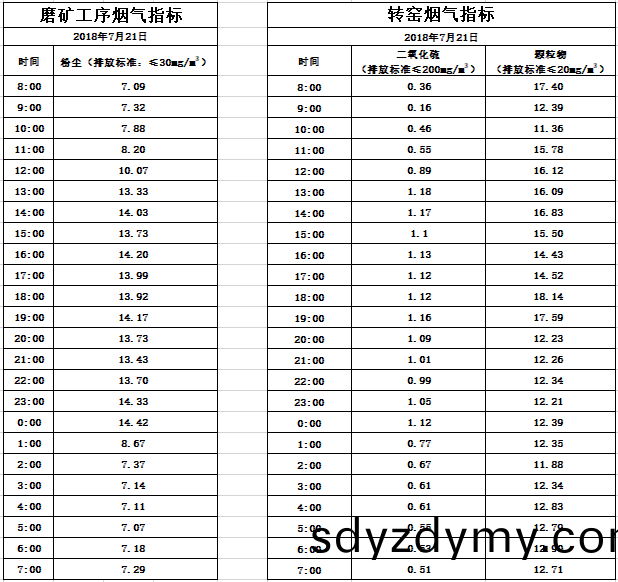 山東道恩(en)鈦業股份有限公(gong)司2018年(nian)7月21日(ri)磨(mo)鑛(kuang)工序煙(yan)氣及(ji)轉(zhuan)窰煙氣指(zhi)標數(shu)據:山(shan)東道恩(en)鈦(tai)業股(gu)份(fen)有限(xian)公司2018年(nian)7月21日(ri)磨鑛工序(xu)煙氣(qi)及(ji)轉窰(yao)煙(yan)氣(qi)指標數據(ju):