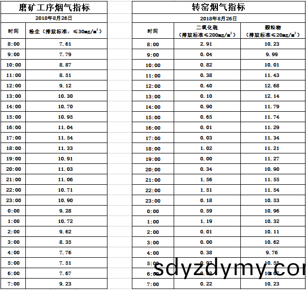 山(shan)東(dong)道恩鈦(tai)業(ye)股份有(you)限公司2018年(nian)8月(yue)26日煙(yan)氣(qi)數據(ju)