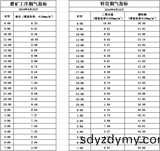 山東(dong)道恩(en)鈦業(ye)股份(fen)有(you)限(xian)公司(si)2018年9月22日磨(mo)鑛(kuang)工(gong)序煙(yan)氣(qi)及(ji)轉(zhuan)窰煙(yan)氣指(zhi)標數(shu)據(ju):山東(dong)道(dao)恩(en)鈦(tai)業股(gu)份(fen)有(you)限公(gong)司(si)2018年9月22日(ri)磨鑛(kuang)工(gong)序(xu)煙(yan)氣(qi)及(ji)轉窰煙(yan)氣指(zhi)標(biao)數(shu)據(ju):