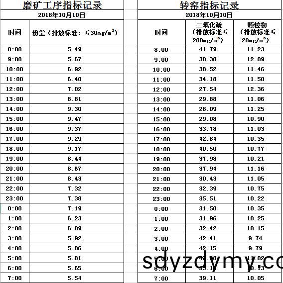 山(shan)東道恩(en)鈦(tai)業股份(fen)有限(xian)公(gong)司(si)2018年10月(yue)10日(ri)磨(mo)鑛(kuang)工序(xu)煙(yan)氣及(ji)轉窰(yao)煙(yan)氣指標數據(ju):山(shan)東(dong)道(dao)恩(en)鈦業(ye)股(gu)份(fen)有限公司(si)2018年(nian)10月10日磨鑛工(gong)序(xu)煙氣(qi)及轉(zhuan)窰煙(yan)氣(qi)指標數據(ju):