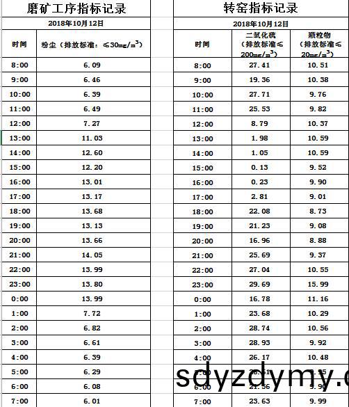 山(shan)東(dong)道恩(en)鈦業(ye)股份(fen)有(you)限(xian)公司(si)2018年10月12日(ri)磨鑛(kuang)工(gong)序(xu)煙(yan)氣(qi)及(ji)轉(zhuan)窰煙(yan)氣(qi)指標(biao)數據(ju):山(shan)東道(dao)恩(en)鈦(tai)業股份(fen)有限(xian)公(gong)司(si)2018年(nian)10月(yue)12日磨鑛工序(xu)煙(yan)氣(qi)及轉(zhuan)窰煙(yan)氣(qi)指(zhi)標(biao)數(shu)據: