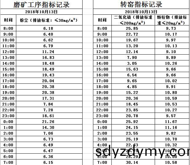 山東道(dao)恩(en)鈦(tai)業(ye)股(gu)份有限(xian)公(gong)司(si)2018年(nian)10月(yue)13日磨鑛(kuang)工序(xu)煙(yan)氣及轉(zhuan)窰(yao)煙氣指標(biao)數據(ju):山(shan)東(dong)道恩(en)鈦(tai)業股份有(you)限公司(si)2018年10月(yue)13日磨鑛(kuang)工(gong)序煙氣(qi)及轉窰煙(yan)氣指標數(shu)據(ju):