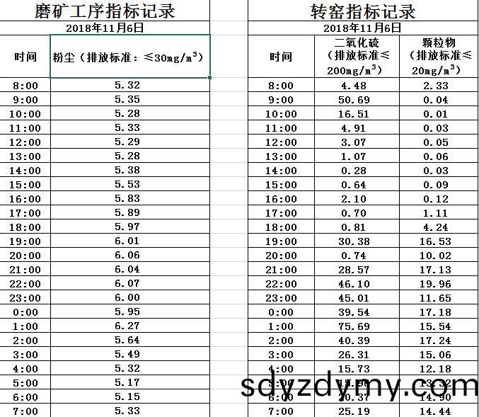 山東(dong)道恩鈦(tai)業股(gu)份(fen)有限公(gong)司(si)2018年11月6日(ri)磨鑛(kuang)工序(xu)煙(yan)氣(qi)及(ji)轉窰(yao)煙(yan)氣(qi)指標數(shu)據:山(shan)東道(dao)恩鈦(tai)業(ye)股(gu)份(fen)有(you)限(xian)公(gong)司2018年(nian)11月6日(ri)磨鑛工序(xu)煙氣及轉窰(yao)煙氣指標數據: