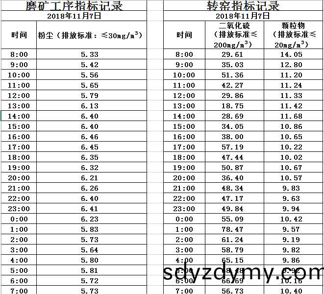 山東(dong)道恩(en)鈦(tai)業股份有限(xian)公司2018年11月7日磨鑛(kuang)工(gong)序煙(yan)氣及轉窰(yao)煙氣指(zhi)標數(shu)據(ju):山(shan)東道(dao)恩鈦業(ye)股(gu)份(fen)有(you)限公(gong)司(si)2018年(nian)11月(yue)7日磨鑛工序(xu)煙氣及(ji)轉(zhuan)窰煙氣指(zhi)標(biao)數據: