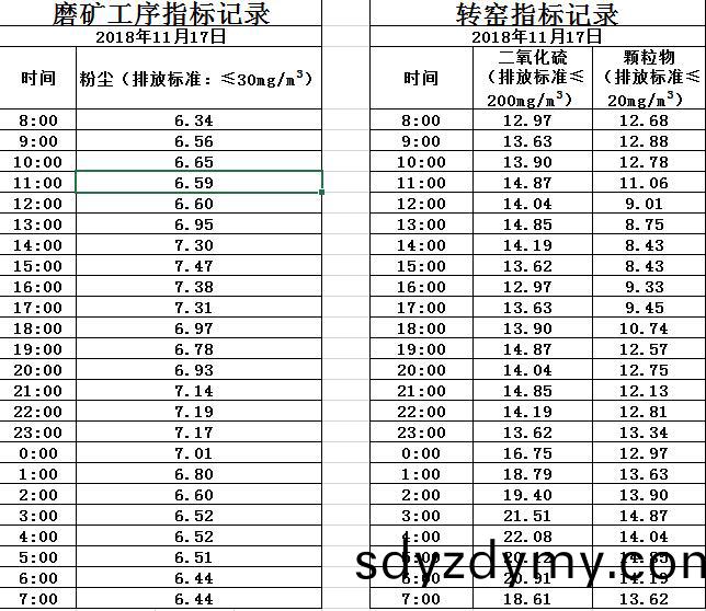 山(shan)東道(dao)恩鈦(tai)業(ye)股份有(you)限公司2018年(nian)11月(yue)17日磨(mo)鑛(kuang)工(gong)序(xu)煙(yan)氣(qi)及(ji)轉窰(yao)煙氣指標(biao)數據(ju):山東道(dao)恩(en)鈦(tai)業股(gu)份(fen)有(you)限(xian)公司2018年(nian)11月17日(ri)磨鑛(kuang)工(gong)序(xu)煙(yan)氣及轉窰(yao)煙氣(qi)指(zhi)標(biao)數據: