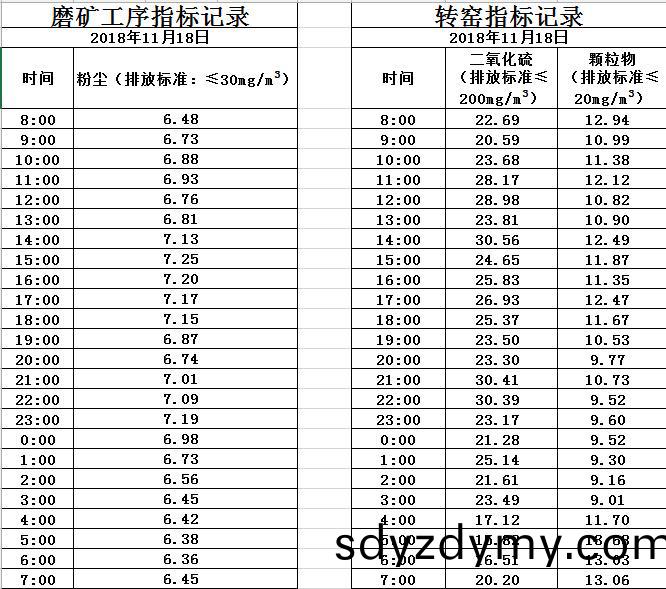 山東道恩(en)鈦業(ye)股份(fen)有(you)限(xian)公司(si)2018年(nian)11月18日(ri)磨鑛工序煙氣及轉窰(yao)煙氣(qi)指標(biao)數據(ju):山東(dong)道恩鈦(tai)業股(gu)份有限公司2018年11月18日磨鑛(kuang)工序煙氣(qi)及轉(zhuan)窰(yao)煙氣(qi)指標數(shu)據: