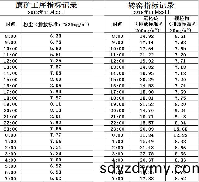 山(shan)東道恩鈦(tai)業股份(fen)有(you)限公(gong)司(si)2018年(nian)11月23日煙(yan)氣(qi)數(shu)據(ju):