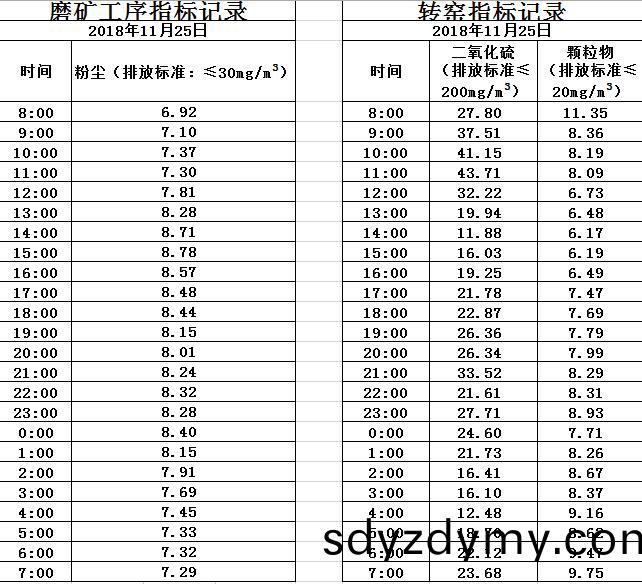 山(shan)東(dong)道(dao)恩(en)鈦(tai)業(ye)股份(fen)有限公(gong)司2018年11月25日磨鑛工(gong)序煙(yan)氣(qi)及(ji)轉(zhuan)窰(yao)煙(yan)氣指(zhi)標(biao)數(shu)據(ju):山(shan)東(dong)道(dao)恩鈦(tai)業股份(fen)有(you)限(xian)公(gong)司2018年(nian)11月25日(ri)磨(mo)鑛工序(xu)煙(yan)氣(qi)及(ji)轉窰(yao)煙氣指標數(shu)據(ju):