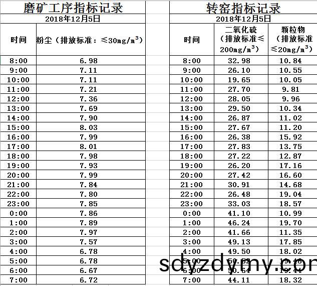 山(shan)東(dong)道恩鈦(tai)業(ye)股份有(you)限(xian)公(gong)司(si)2018年12月(yue)5日磨(mo)鑛(kuang)工序(xu)煙(yan)氣及轉(zhuan)窰煙(yan)氣(qi)指標(biao)數(shu)據:山(shan)東道(dao)恩鈦(tai)業股(gu)份(fen)有(you)限公司2018年(nian)12月(yue)5日(ri)磨鑛(kuang)工(gong)序(xu)煙(yan)氣(qi)及轉(zhuan)窰(yao)煙氣指(zhi)標數(shu)據(ju):