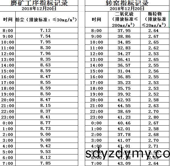 山東(dong)道恩(en)鈦業股份有限公司(si)2018年12月20日(ri)磨(mo)鑛工序煙(yan)氣及轉(zhuan)窰煙氣指(zhi)標(biao)數(shu)據:山東(dong)道(dao)恩(en)鈦(tai)業股份(fen)有限(xian)公司2018年(nian)12月20日(ri)磨鑛(kuang)工序煙氣(qi)及轉(zhuan)窰(yao)煙(yan)氣(qi)指(zhi)標(biao)數據: