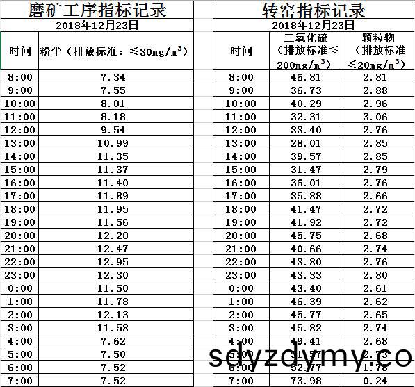 山(shan)東(dong)道(dao)恩鈦業股份有(you)限(xian)公司(si)2018年12月(yue)23日磨(mo)鑛工(gong)序煙(yan)氣及(ji)轉窰煙氣指標數據(ju):山(shan)東道(dao)恩(en)鈦業股(gu)份有限公司2018年12月(yue)23日(ri)磨(mo)鑛(kuang)工序煙(yan)氣及(ji)轉窰(yao)煙氣指(zhi)標(biao)數(shu)據: