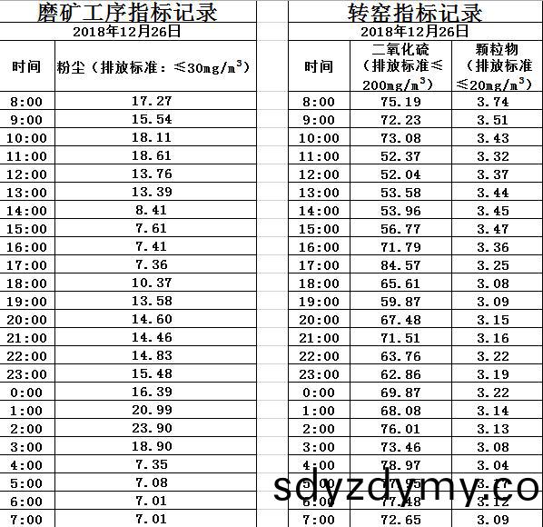 山(shan)東(dong)道(dao)恩鈦(tai)業股(gu)份(fen)有(you)限公(gong)司(si)2018年(nian)12月26日(ri)煙(yan)氣數(shu)據(ju):