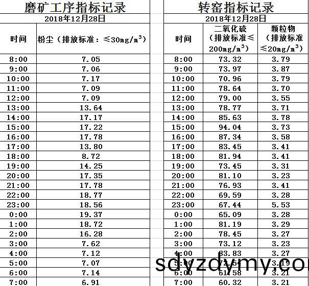 山東(dong)道(dao)恩(en)鈦業股(gu)份(fen)有(you)限(xian)公(gong)司(si)2018年(nian)12月28日磨鑛工序煙氣及(ji)轉窰煙氣指(zhi)標(biao)數據:山東(dong)道恩鈦業股份(fen)有限公司(si)2018年(nian)12月28日(ri)磨鑛工序煙(yan)氣及(ji)轉(zhuan)窰(yao)煙氣(qi)指(zhi)標(biao)數據: