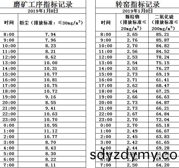 山(shan)東(dong)道(dao)恩(en)鈦(tai)業股(gu)份有限(xian)公司(si)2019年(nian)1月8日(ri)磨(mo)鑛(kuang)工(gong)序(xu)煙氣(qi)及(ji)轉窰(yao)煙氣(qi)指(zhi)標數據(ju):山(shan)東(dong)道恩(en)鈦(tai)業股份(fen)有限公司(si)2019年(nian)1月8日(ri)磨(mo)鑛(kuang)工序煙氣及轉窰煙氣(qi)指標(biao)數據: