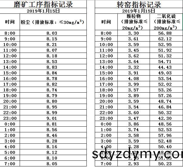 山(shan)東(dong)道恩鈦(tai)業股份有(you)限(xian)公司2019年(nian)1月(yue)15日(ri)煙氣(qi)數據: