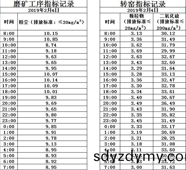 山(shan)東道(dao)恩鈦(tai)業股(gu)份(fen)有限公(gong)司(si)2019年(nian)2月(yue)4日(ri)磨(mo)鑛工序(xu)煙氣(qi)及(ji)轉(zhuan)窰煙氣指標(biao)數(shu)據(ju):山(shan)東(dong)道(dao)恩鈦(tai)業(ye)股份有(you)限(xian)公(gong)司(si)2019年(nian)2月4日磨(mo)鑛工(gong)序煙氣(qi)及(ji)轉窰(yao)煙(yan)氣(qi)指標(biao)數(shu)據: