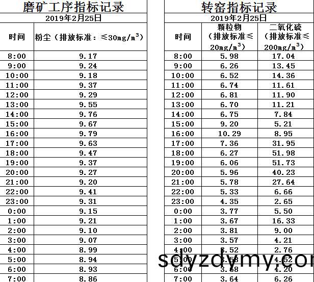 山(shan)東道恩(en)鈦業股(gu)份(fen)有限(xian)公(gong)司2019年(nian)2月25日磨(mo)鑛(kuang)工序煙氣及(ji)轉(zhuan)窰(yao)煙(yan)氣(qi)指(zhi)標(biao)數(shu)據(ju):山(shan)東道恩鈦(tai)業(ye)股(gu)份有(you)限(xian)公司(si)2019年2月(yue)25日(ri)磨(mo)鑛(kuang)工(gong)序煙(yan)氣(qi)及(ji)轉窰(yao)煙(yan)氣指標(biao)數據:
