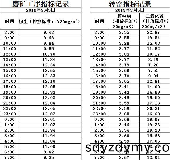 山東道(dao)恩鈦(tai)業(ye)股(gu)份(fen)有(you)限(xian)公司(si)2019年3月(yue)5日(ri)磨鑛工(gong)序(xu)煙氣(qi)及(ji)轉窰(yao)煙(yan)氣(qi)指(zhi)標數(shu)據(ju):山(shan)東道恩(en)鈦(tai)業(ye)股份有限(xian)公(gong)司(si)2019年3月(yue)5日磨鑛(kuang)工(gong)序(xu)煙(yan)氣及(ji)轉窰煙氣指(zhi)標(biao)數(shu)據(ju):