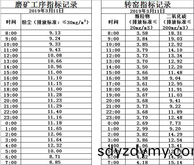 山東道恩(en)鈦業(ye)股份(fen)有(you)限(xian)公(gong)司2019年3月11日磨(mo)鑛工序煙氣及(ji)轉窰(yao)煙氣(qi)指(zhi)標(biao)數據(ju):山東道(dao)恩(en)鈦業(ye)股(gu)份有(you)限公司(si)2019年(nian)3月11日(ri)磨(mo)鑛工序煙氣(qi)及(ji)轉窰(yao)煙(yan)氣指標(biao)數(shu)據(ju):