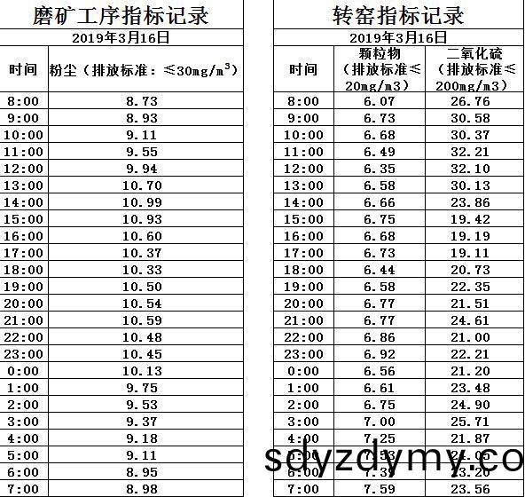 山東(dong)道(dao)恩鈦(tai)業股(gu)份(fen)有限公司2019年(nian)3月16日(ri)磨鑛(kuang)工序煙(yan)氣及轉窰煙氣指(zhi)標(biao)數(shu)據(ju):山(shan)東道(dao)恩鈦(tai)業股(gu)份有(you)限公司(si)2019年(nian)3月16日磨鑛(kuang)工(gong)序(xu)煙(yan)氣(qi)及(ji)轉窰(yao)煙氣指(zhi)標(biao)數(shu)據: