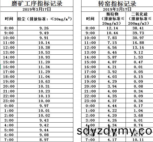 山(shan)東(dong)道(dao)恩鈦業(ye)股份(fen)有限(xian)公(gong)司(si)2019年3月17日(ri)磨鑛(kuang)工(gong)序煙氣(qi)及轉(zhuan)窰煙(yan)氣指標(biao)數據:山東道恩(en)鈦(tai)業股(gu)份有(you)限(xian)公(gong)司(si)2019年3月17日磨(mo)鑛工(gong)序煙氣及(ji)轉(zhuan)窰(yao)煙(yan)氣指標數(shu)據(ju):