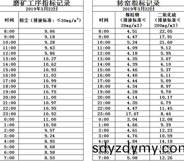 山東(dong)道(dao)恩(en)鈦業股份(fen)有限公(gong)司(si)2019年3月22日(ri)磨鑛工序煙氣(qi)及(ji)轉(zhuan)窰(yao)煙氣指(zhi)標數據:山東(dong)道(dao)恩(en)鈦業股(gu)份(fen)有(you)限(xian)公司2019年(nian)3月(yue)22日(ri)磨鑛(kuang)工(gong)序煙氣及轉(zhuan)窰(yao)煙氣指(zhi)標數(shu)據(ju):